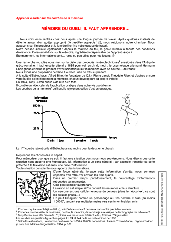 Que retient-on au bout de 20 minutes de cours ? Et que reste t-il après une semaine, après un mois ? Comment limiter le phénomène de l'oubli ?
